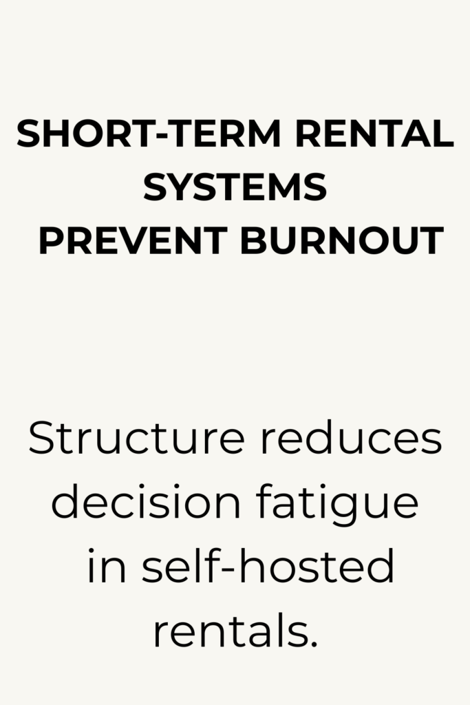Short-term rental systems reduce decision fatigue, eliminate repetitive guest messaging, and create predictable turnover standards. Without structured Airbnb systems, even one property can feel overwhelming during busy season.